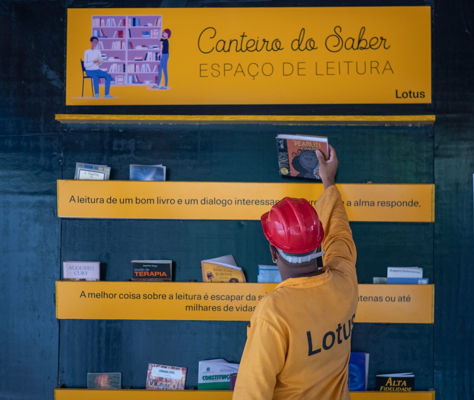 Criamos programas de apoio educacional e cultural para nossos colaboradores e suas famílias, como o "Canteiro do Saber", um projeto que instala bibliotecas em todos os canteiros de obras e distribui materiais escolares aos filhos em idade escolar. Além disso, oferecemos apoio a programas universitários, como palestras e visitas às nossas obras. Acreditamos que a educação transforma vidas.